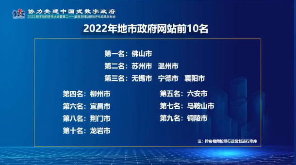 同日,中国信息化研究与促进网发布了《2022年中国优秀政务平台推荐及综合影响力评估结果通报》,苏州获评“2022年度中国领先政务网站(地市级政府网站)”,已连续九年获此殊荣。
